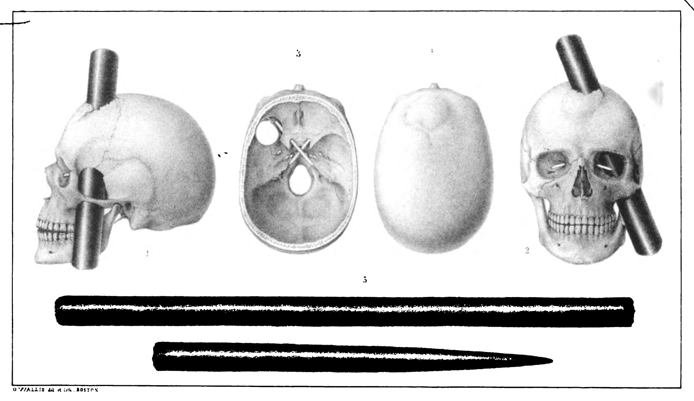 Wahrscheinlich kommen Eisen und Fels in Kontakt und entsteht so ein Funke. Dieser entzündet das Schwarzpulver, das noch nicht mit Sand abgedeckt ist. Die Explosion schießt die Eisenstange durch seinen Kopf. Wäre sie nicht angespitzt gewesen, hätte ihm die schiere Wucht wohl Schädel und Genick gebrochen. So wird der junge Mann zwar umgeworfen. Doch wenig später steht er wieder auf – blutend und mit einem Loch im Kopf. Er ist bei Bewusstsein und ansprechbar.