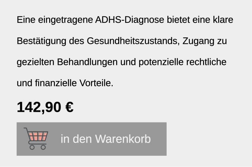 Bildzitat nach Originalvorlage: Bei einer auf ADHS-Diagnosen spezialisierten Praxis in einer deutschen Großstadt kann man ein vorbereitendes Gespräch für rund 143 Euro reservieren. Bis zur gewünschten Diagnose wird man tiefer in die Tasche greifen müssen. Da ist die Erwartungshalten der Kunden, das gewünschte Resultat zu erhalten, natürlich hoch. Aber dafür winken „rechtliche und finanzielle Vorteile“.